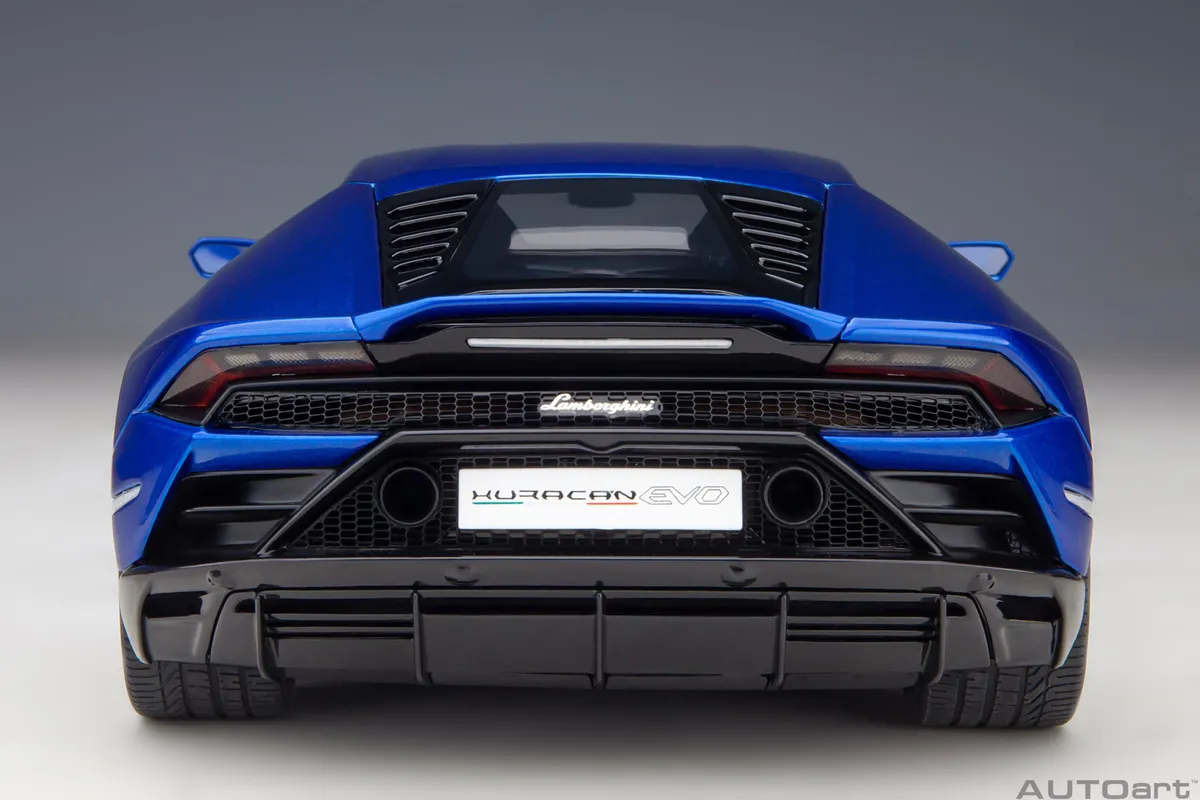 Cette miniature haut de gamme reproduit avec une grande précision la Lamborghini Huracan Evo dans une livrée bleue Nethuns à l'échelle 1:18ème. Fabriquée par AUTOart, ce modèle réduit possède des ouvrants (portes, coffre et capot moteur) ainsi que les roues directionnelles.