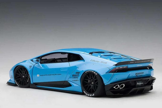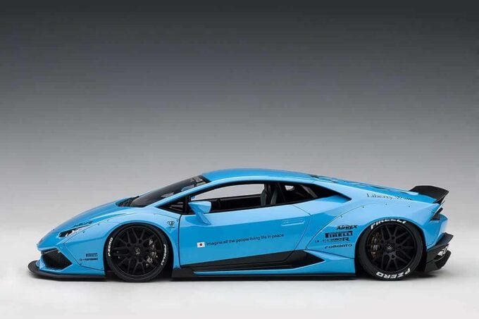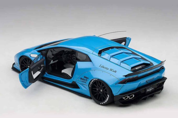 Succombez à ce monstre italien construit par Lamborghini et musclé par Liberty Walk ! Cette miniature AUTOart à l'échelle 1:18 en composite reproduit à la perfection tous les détails de bolide dans son coloris Bleu Metallic et possède même des ouvrants (deux portes) ainsi que les roues avant tournantes.