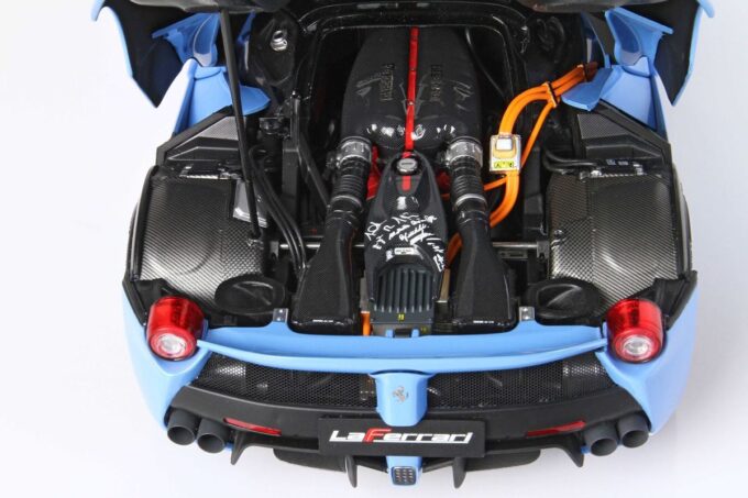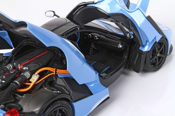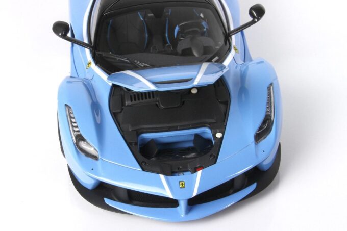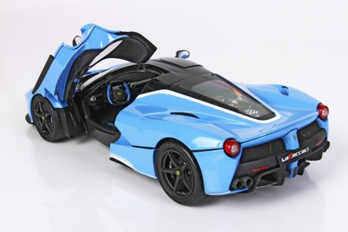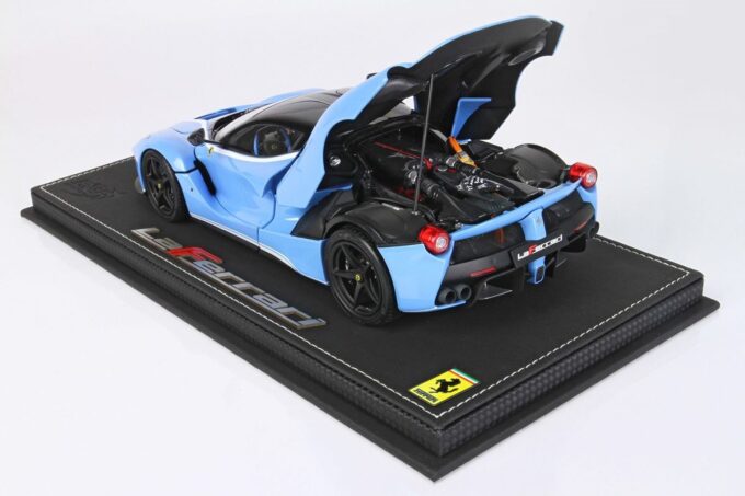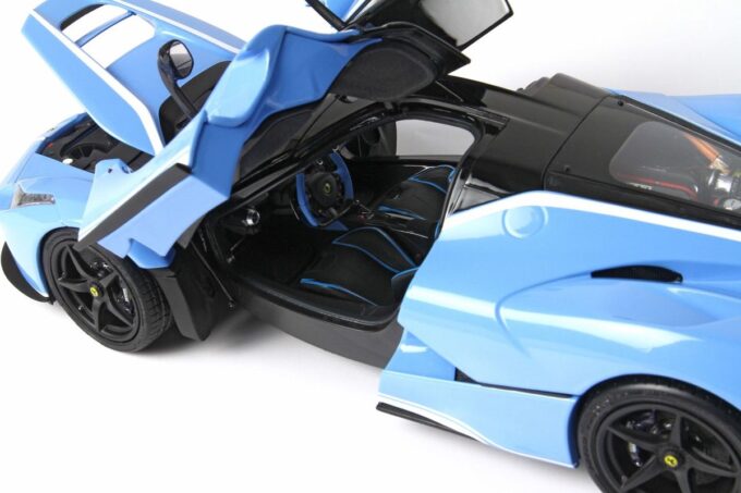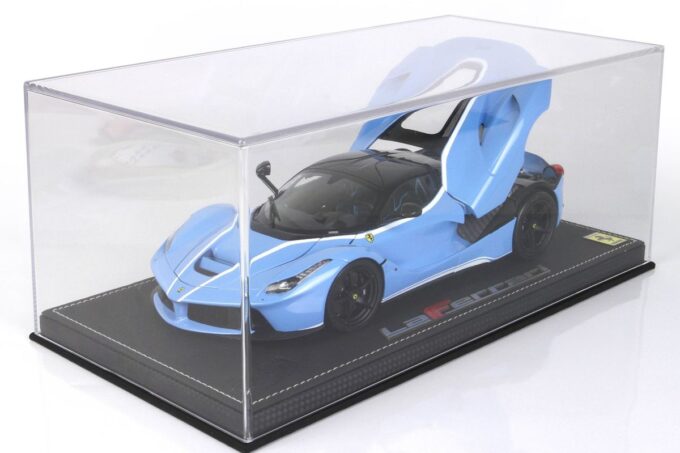 Cette splendide miniature en métal reproduit avec une incroyable précision la Ferrari LaFerrari dans une couleur bleue (Baby Blue). Fabriquée par BBR, ce produit haut de gamme possède de nombreux ouvrants et il est livré avec un socle haut de gamme ainsi qu'une vitrine transparente. Série limitée à seulement 300 pièces.