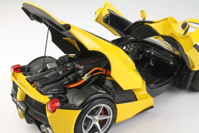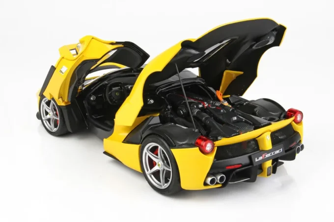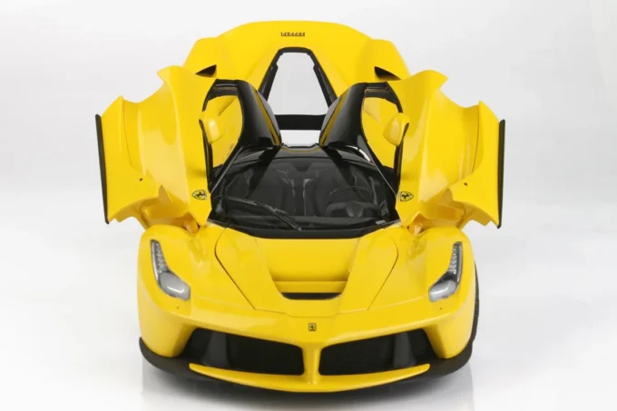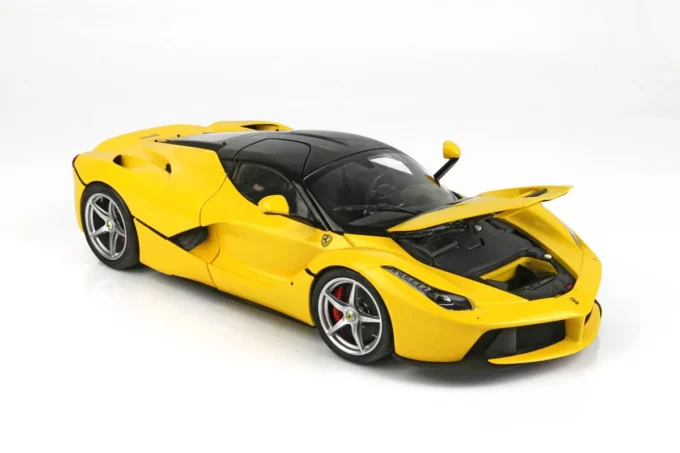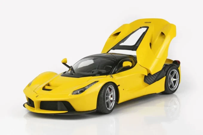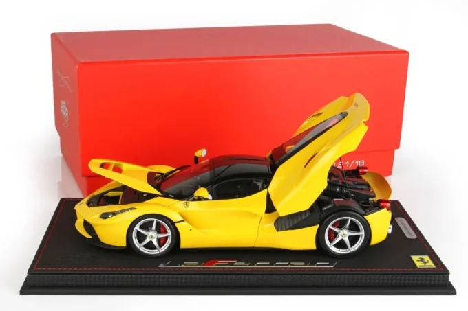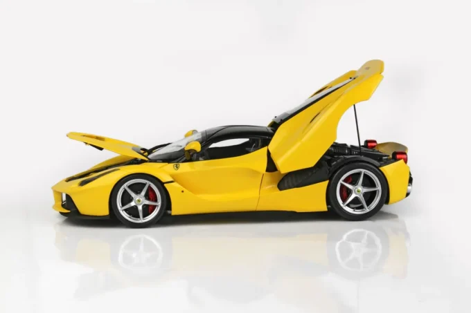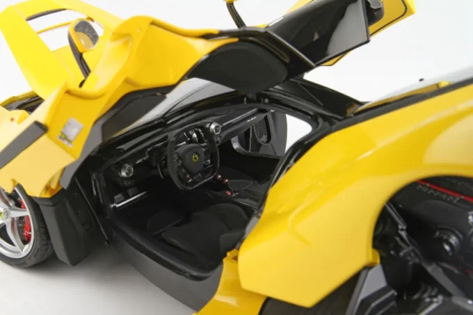 Cette voiture miniature à l'échelle 1:18ème reproduit la Ferrari LaFerrari dans un coloris jaune Modena. Fabriqué par BBR, ce modèle réduit est réalisé en métal. Certaines parties sont ouvrantes. Miniature produite en série limitée à seulement 120 exemplaires.