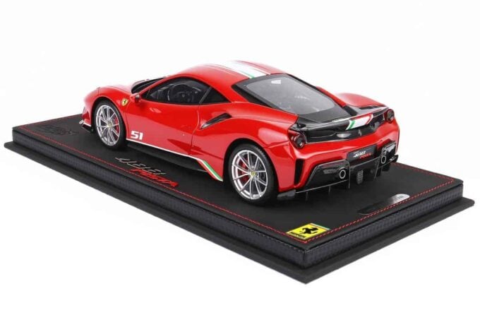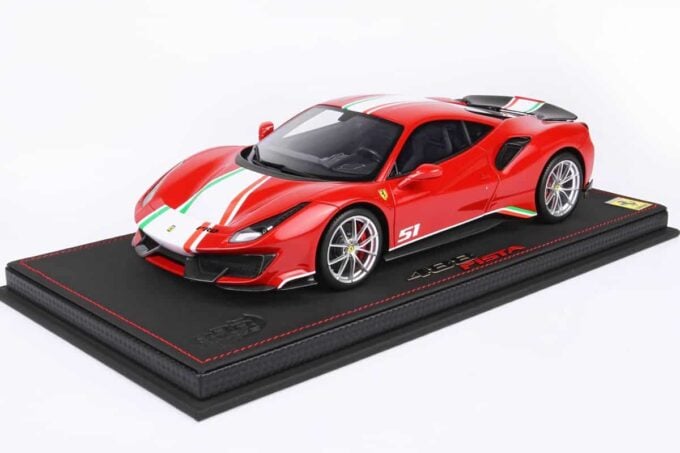 Ce modèle réduit haut de gamme reproduit la Ferrari 488 Pista Piloti dans une réplique extrêmement fidèle. De couleur rouge, cette miniature est fabriquée par BBR à l’échelle 1:18ème et livrée sur un support de qualité.