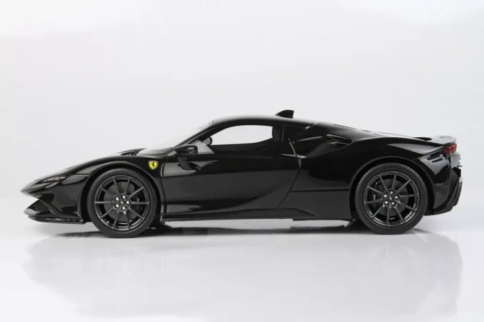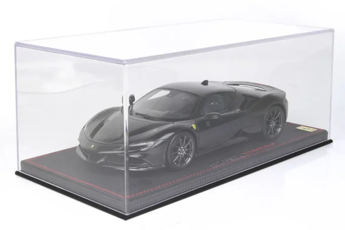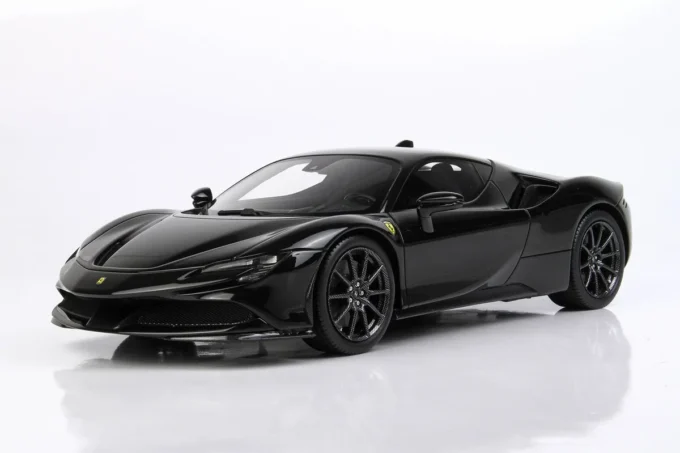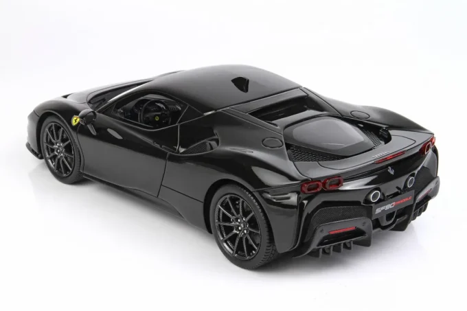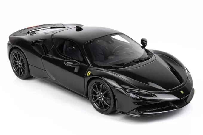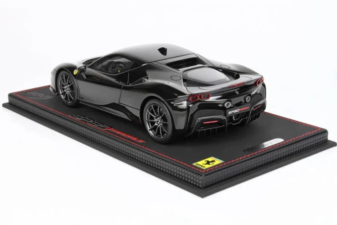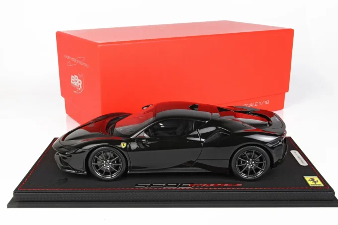 Cette voiture miniature à l'échelle 1:18ème reproduit la Ferrari SF90 Stradale dans un coloris noir Daytona. Fabriqué par BBR, ce modèle réduit est réalisé en résine et livré avec une vitrine transparente. Miniature produite en série limitée à seulement 40 exemplaires.