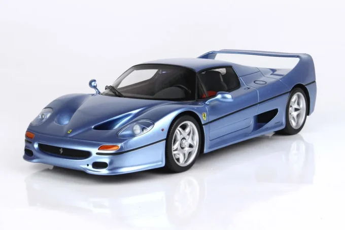 Cette voiture miniature à l'échelle 1:18ème reproduit la Ferrari F50 Coupe dans un coloris bleu California. Fabriqué par BBR, ce modèle réduit est réalisé en résine. Miniature produite en série limitée à seulement 48 exemplaires.