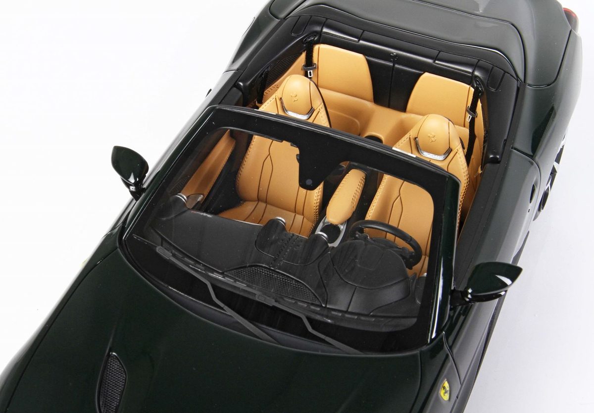 Cette voiture miniature à l’échelle 1:18 reproduit avec une précision exceptionnelle la Ferrari Portofino M (en version toit rétracté) dans une livrée vert British. Modèle limité à 40 pièces numérotées et livré sur un socle haut de gamme (sans vitrine).