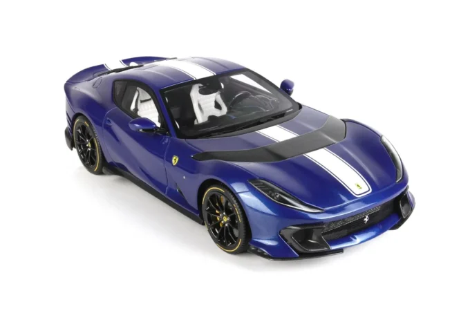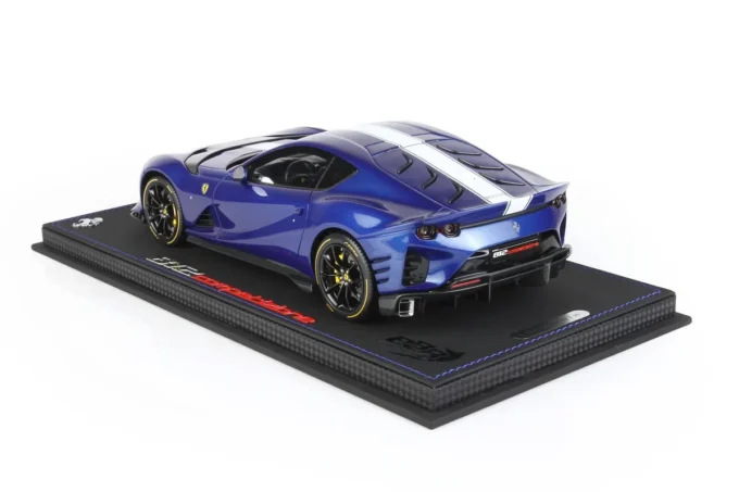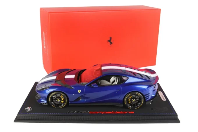 Cette voiture miniature à l'échelle 1:18ème reproduit la Ferrari 812 Competizione dans un coloris bleu Tour de France. Fabriqué par BBR, ce modèle réduit est réalisé en résine et livré sur un socle haut de gamme. Miniature produite en série limitée à seulement 20 exemplaires.