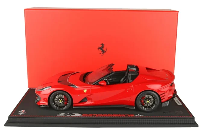 Cette voiture miniature à l'échelle 1:18ème reproduit la Ferrari 812 Competizione A dans un coloris rouge Corsa 322, jantes carbone et étriers de freins rouges. Fabriqué par BBR, ce modèle réduit est réalisé en résine. Miniature produite en série limitée à seulement 24 exemplaires.