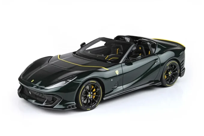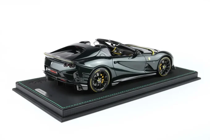 Cette voiture miniature à l'échelle 1:18ème reproduit la Ferrari 812 Competizione A dans un coloris vert Zeltweg. Fabriqué par BBR, ce modèle réduit est réalisé en résine. Miniature produite en série limitée.
