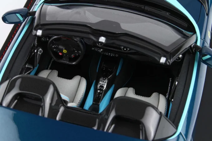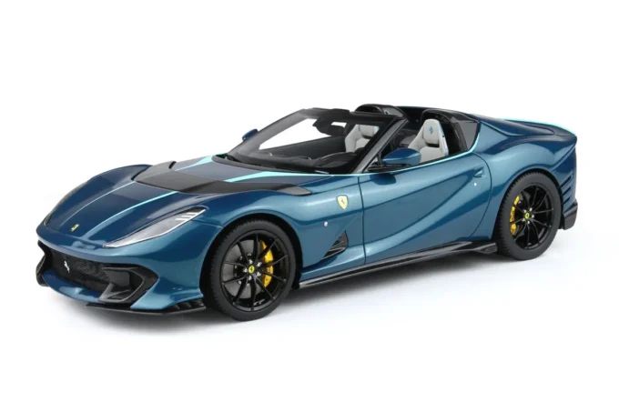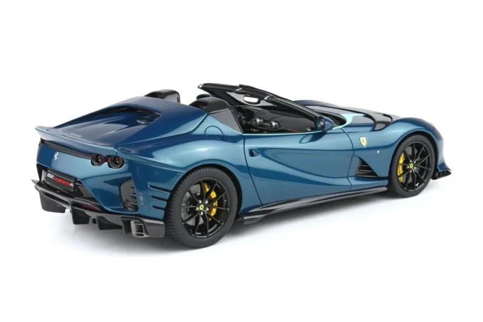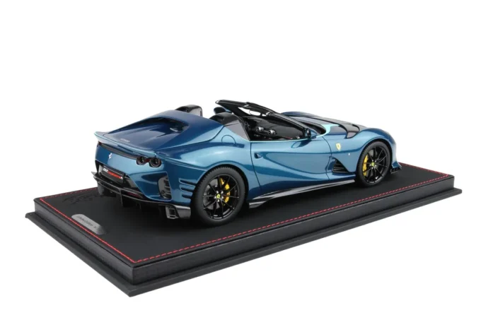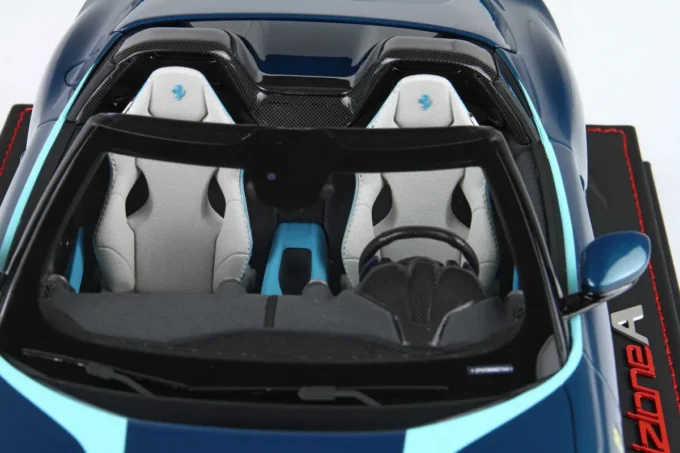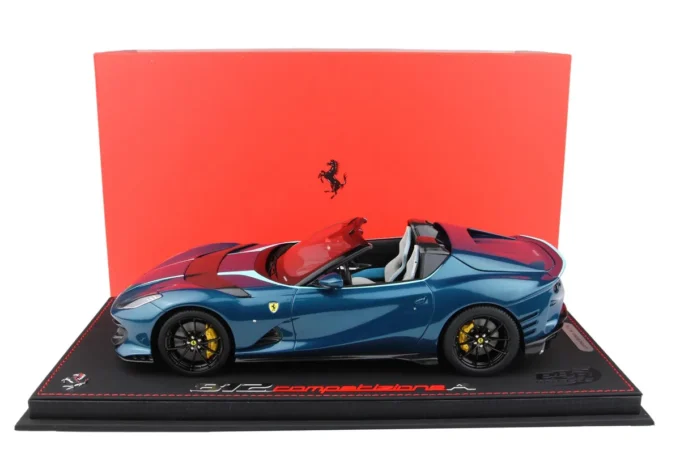Cette voiture miniature à l'échelle 1:18ème reproduit la Ferrari 812 Competizione A dans un coloris bleu Capri. Fabriqué par BBR, ce modèle réduit est réalisé en résine. Miniature produite en série limitée.