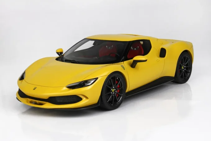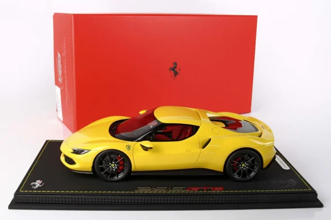 Cette voiture miniature à l'échelle 1:18ème reproduit la Ferrari 296 GTB dans un coloris jaune Modena. Cette version spéciale possède la réplique des jantes en carbone. Fabriqué par BBR, ce modèle réduit est réalisé en résine. Miniature produite en série limitée à seulement 99 exemplaires.