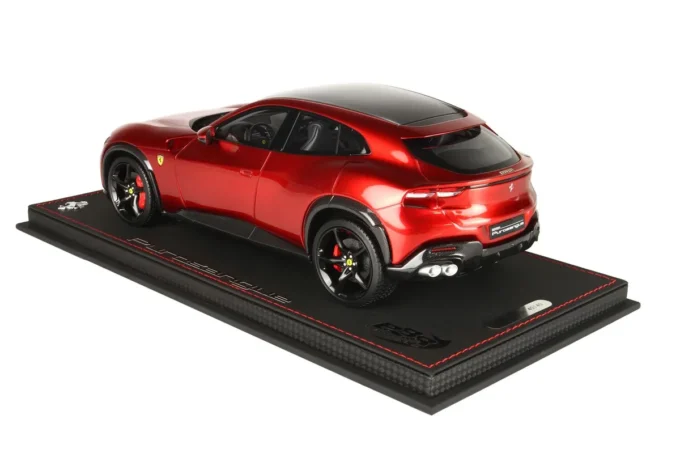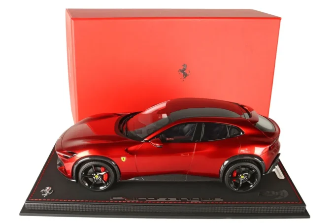 Cette voiture miniature à l'échelle 1:18ème reproduit la Ferrari Purosangue dans un coloris rouge Magma. Fabriqué par BBR, ce modèle réduit est réalisé en résine. Miniature produite en série limitée à seulement 40 exemplaires.