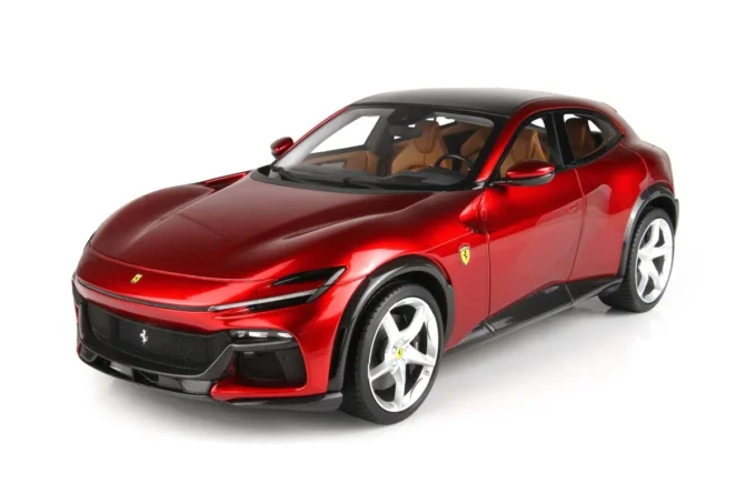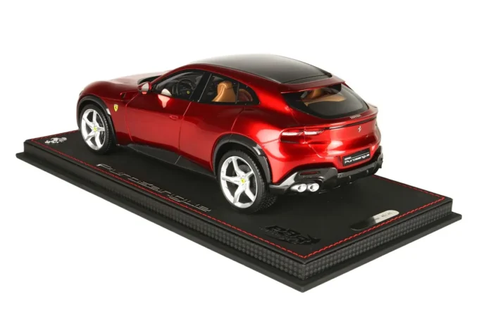 Cette voiture miniature à l'échelle 1:18ème reproduit la Ferrari Purosangue dans un coloris rouge Portofino, intérieur Beige 4208 et toit carbone. Fabriqué par BBR, ce modèle réduit est réalisé en résine. Miniature produite en série limitée à seulement 40 exemplaires numérotés.