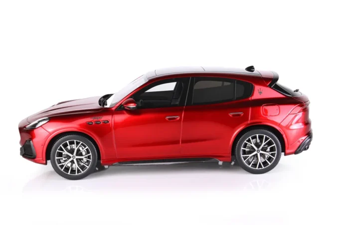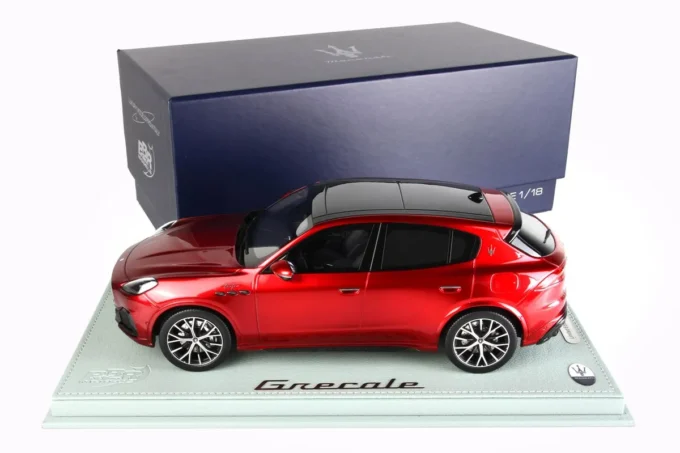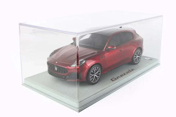 Cette voiture miniature à l'échelle 1:18ème reproduit la Maserati Grecale Trofeo dans un coloris rouge Granturismo. Fabriqué par BBR, ce modèle réduit est réalisé en résine et livré avec une vitrine transparente. Miniature produite en série limitée à seulement 60 exemplaires.
