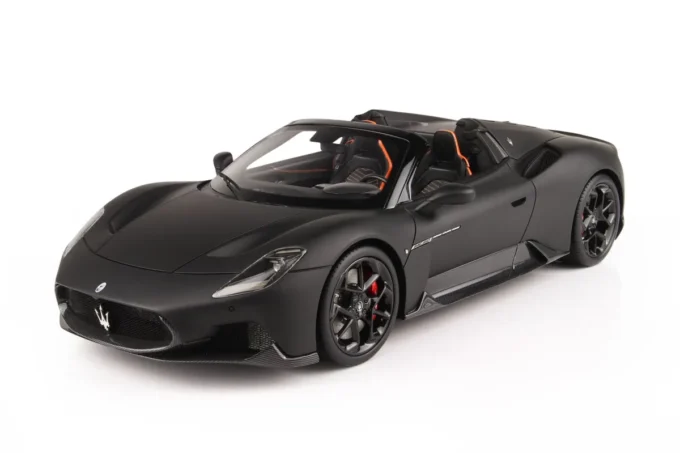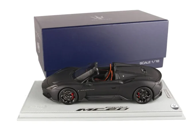 Cette voiture miniature à l'échelle 1:18ème reproduit la Maserati MC20 Cielo dans un coloris noire mat. Fabriqué par BBR, ce modèle réduit est réalisé en résine. Miniature produite en série limitée à seulement 40 exemplaires.