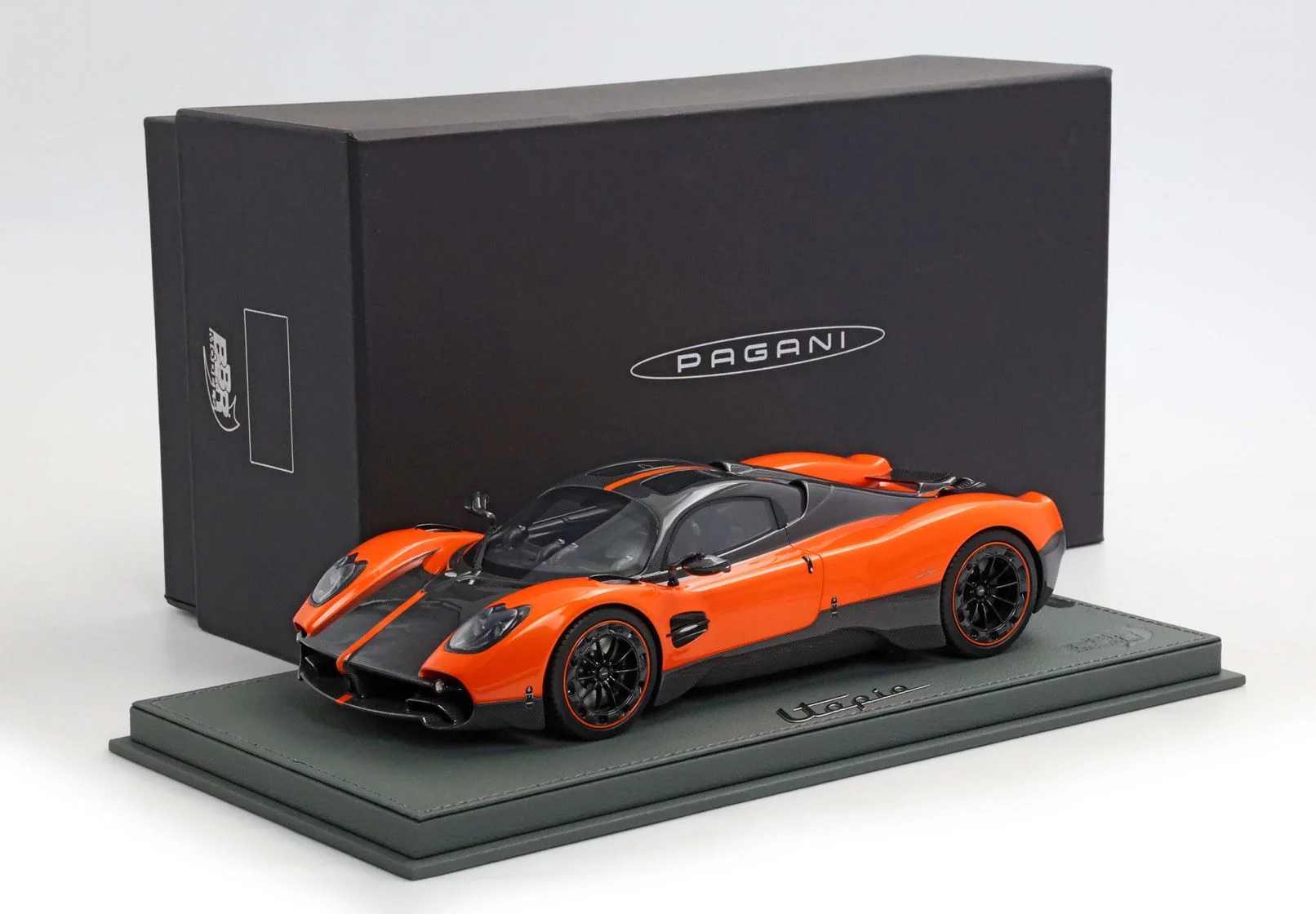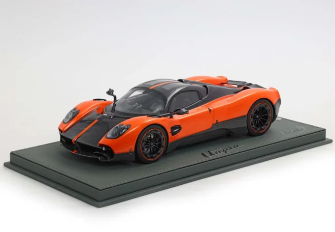 L'Utopia de Pagani renaît à l'échelle 1:18 dans cette interprétation BBR en résine, vêtue d'un somptueux orange Marbella qui sublime ses courbes fluides. Cette reproduction en série limitée, accompagnée de son socle raffiné, célèbre l'hypercar qui ne pèse que 1 280 kg malgré son imposant V12 biturbo Mercedes-AMG. Seuls 99 coupés Utopia ont été produits, tous déjà vendus, faisant de cette miniature un témoin privilégié d'une exclusivité automobile absolue.