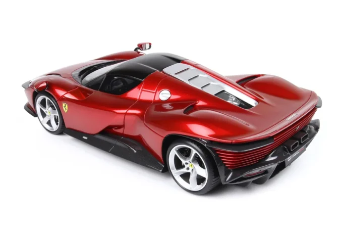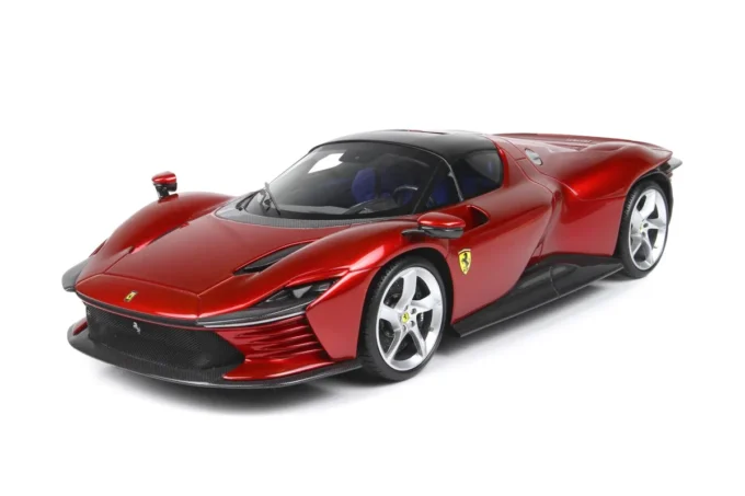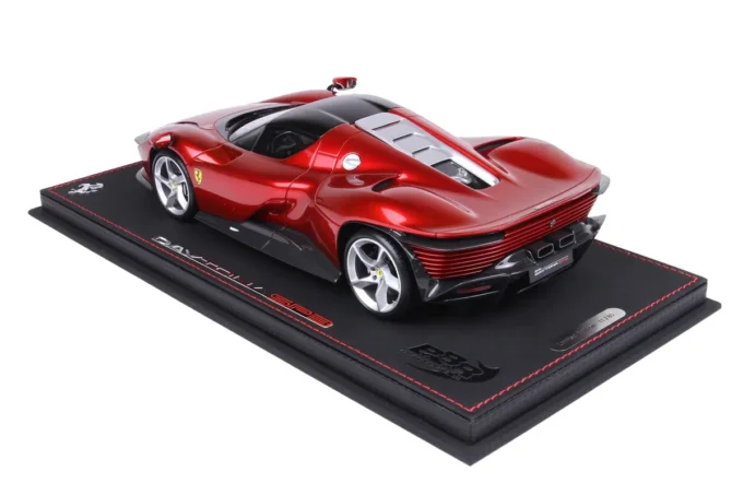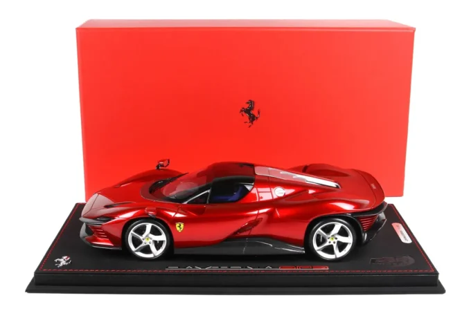 Cette voiture miniature à l'échelle 1:18ème reproduit la Ferrari Daytona SP3 Serie Icona dans un coloris rouge Magma. Fabriqué par BBR, ce modèle réduit est réalisé en résine. Miniature produite en série limitée à seulement 80 exemplaires.