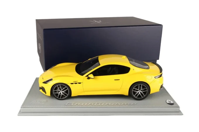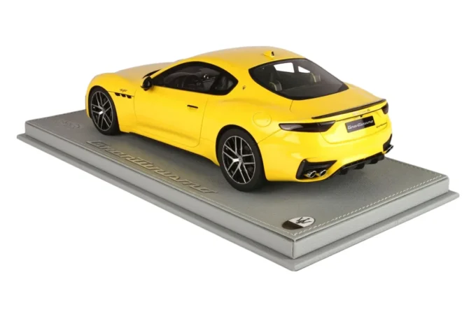 Cette Maserati GranTurismo Trofeo au 1:18 par BBR rayonne dans sa livrée Jaune Corse. Limitée à 24 exemplaires, cette miniature rare représente le modèle équipé du plus puissant V6 jamais monté dans une Maserati de série.