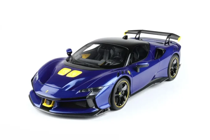 Cette voiture miniature à l'échelle 1:18ème reproduit la Ferrari SF90 XX Stradale dans un coloris bleu Tour de France. Fabriqué par BBR, ce modèle réduit est réalisé en résine. Miniature produite en série limitée à seulement 70 exemplaires.