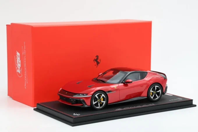 La Ferrari 12Cilindri à l'échelle 1:18 séduit par sa couleur rouge Imola. Cette série limitée de BBR inclut un socle pour une présentation élégante. Avec ses lignes fluides et son dynamisme, cette réplique rend hommage à l'héritage sportif de Ferrari.