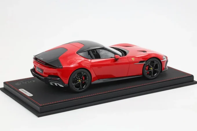 Reproduite par BBR à l’échelle 1:18, cette Ferrari 12Cilindri arbore la célèbre teinte rouge Corsa, associée à des jantes noires pour un contraste saisissant. En résine et en édition limitée à seulement 48 exemplaires, elle est livrée sur un socle pour une présentation idéale. La Ferrari V12, véritable icône de performance, est au cœur de l'histoire de la marque depuis des décennies.