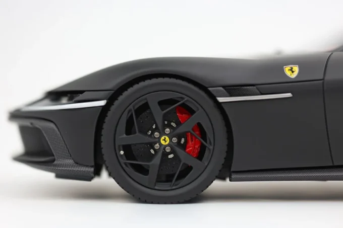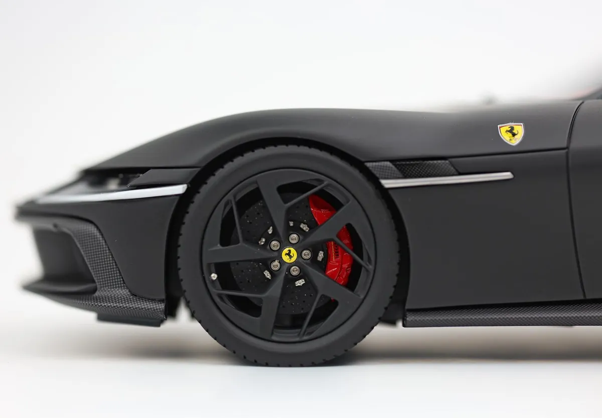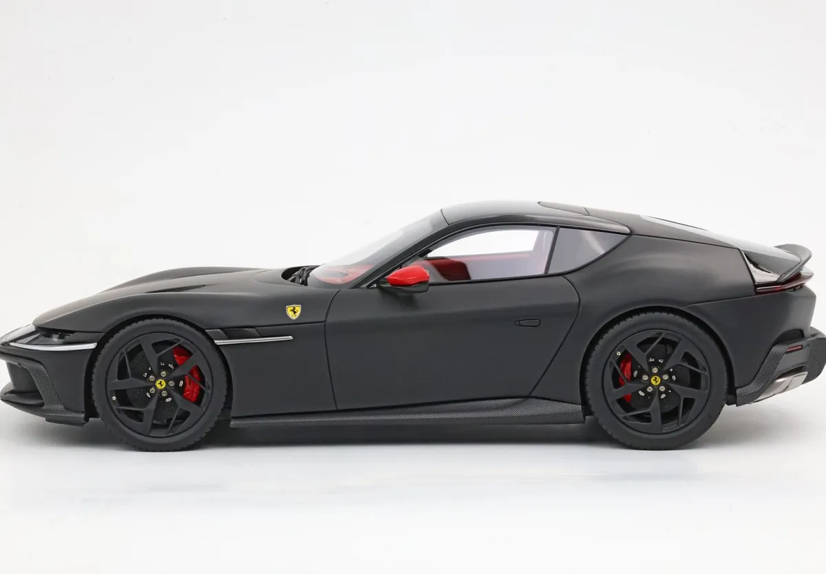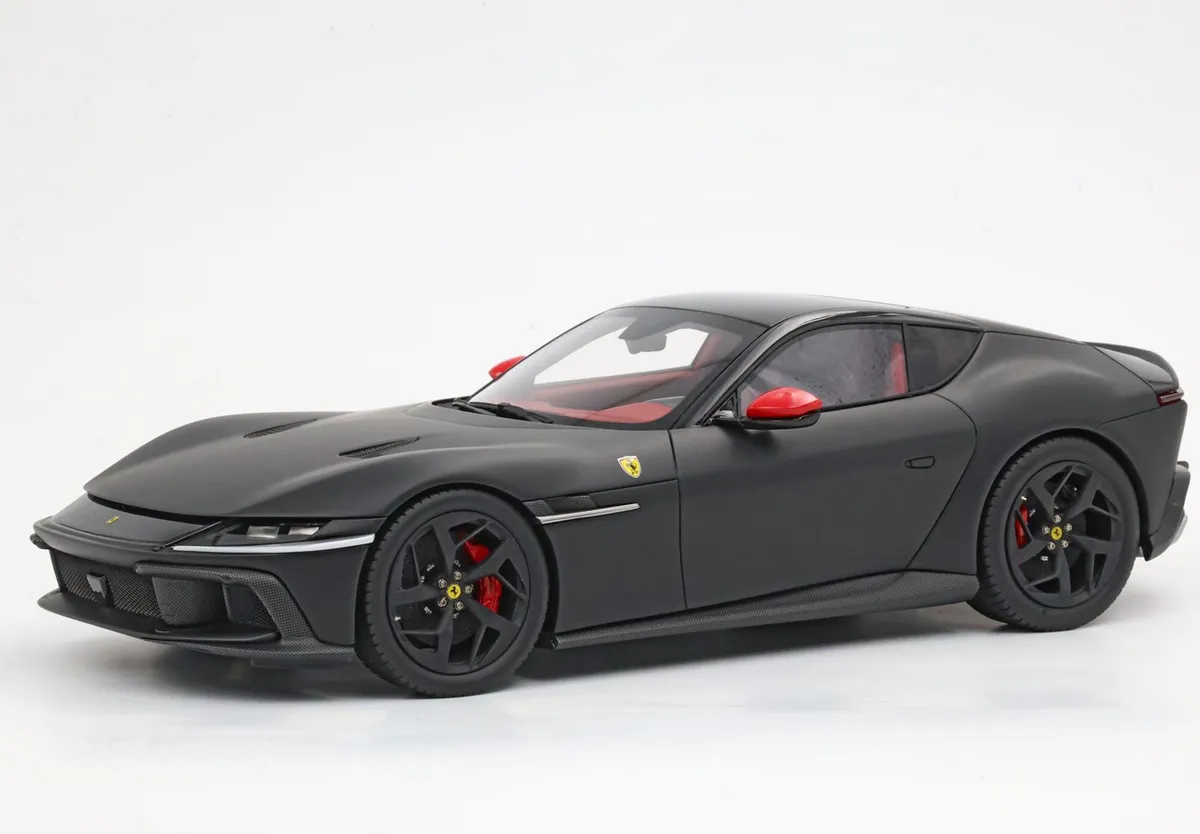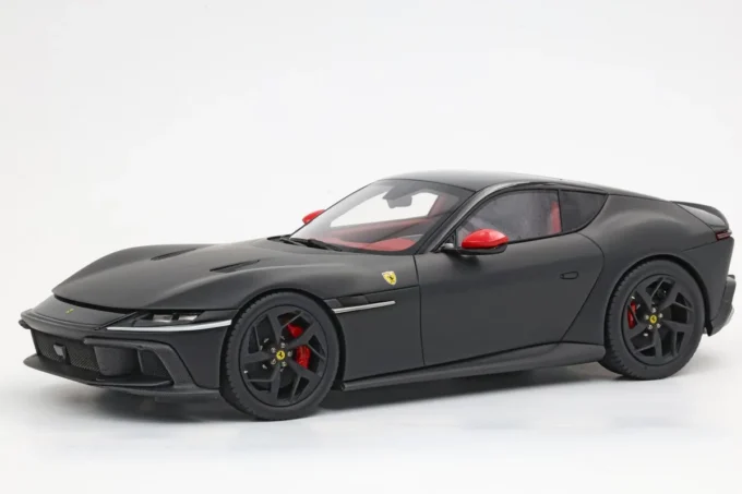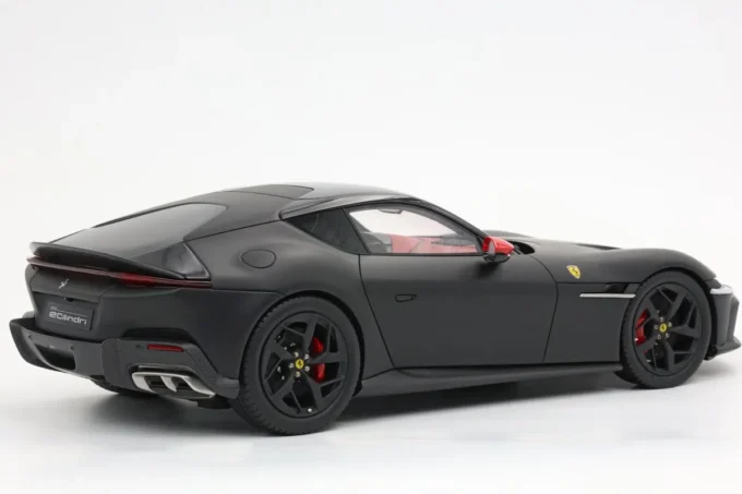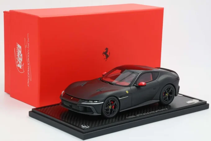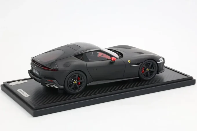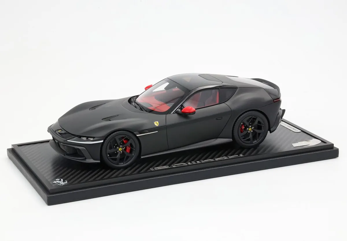 Cette Ferrari 12Cilindri à l'échelle 1:18 est une pièce d'exception fabriquée par BBR. Ce modèle en résine noir mat, avec un toit panoramique, offre une allure sophistiquée et moderne. Produite en édition limitée à seulement 48 exemplaires, elle repose élégamment sur un socle. Le modèle capture l'essence des Ferrari V12, synonymes de performance et de puissance depuis plus de 70 ans.