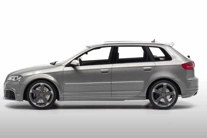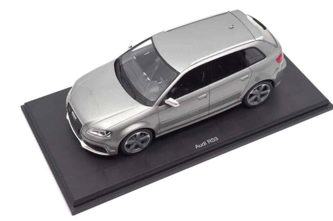 Cette Audi RS 3 est fabriquée en résine et reproduite à l’échelle 1:18 par DNA Collectibles dans une livrée grise. Modèle produit en quantité limitée.