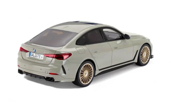 Ce modèle réduit Alpina B4 GT Gran Coupe (G26) à l'échelle 1:18 capture l'élégance sportive de cette berline quatre portes dans un coloris Ivory. Réalisée en résine par GT Spirit, cette pièce en série limitée est présentée sur socle avec packaging officiel Alpina. La version GT se distingue par ses jantes en or et ses détails exclusifs qui reflètent la philosophie grand tourisme d'Alpina.