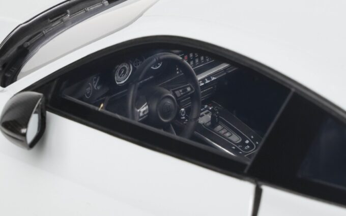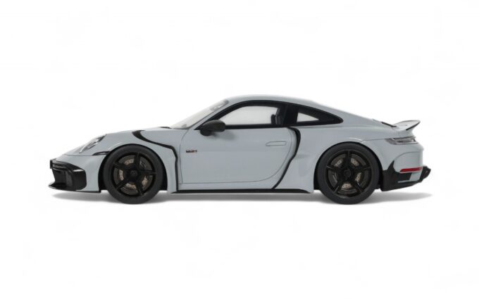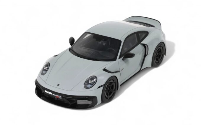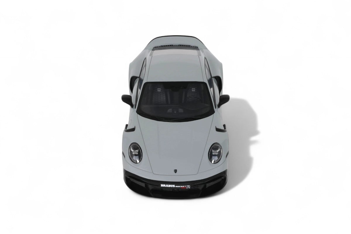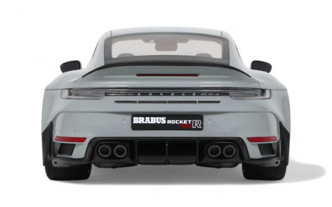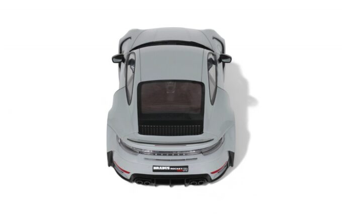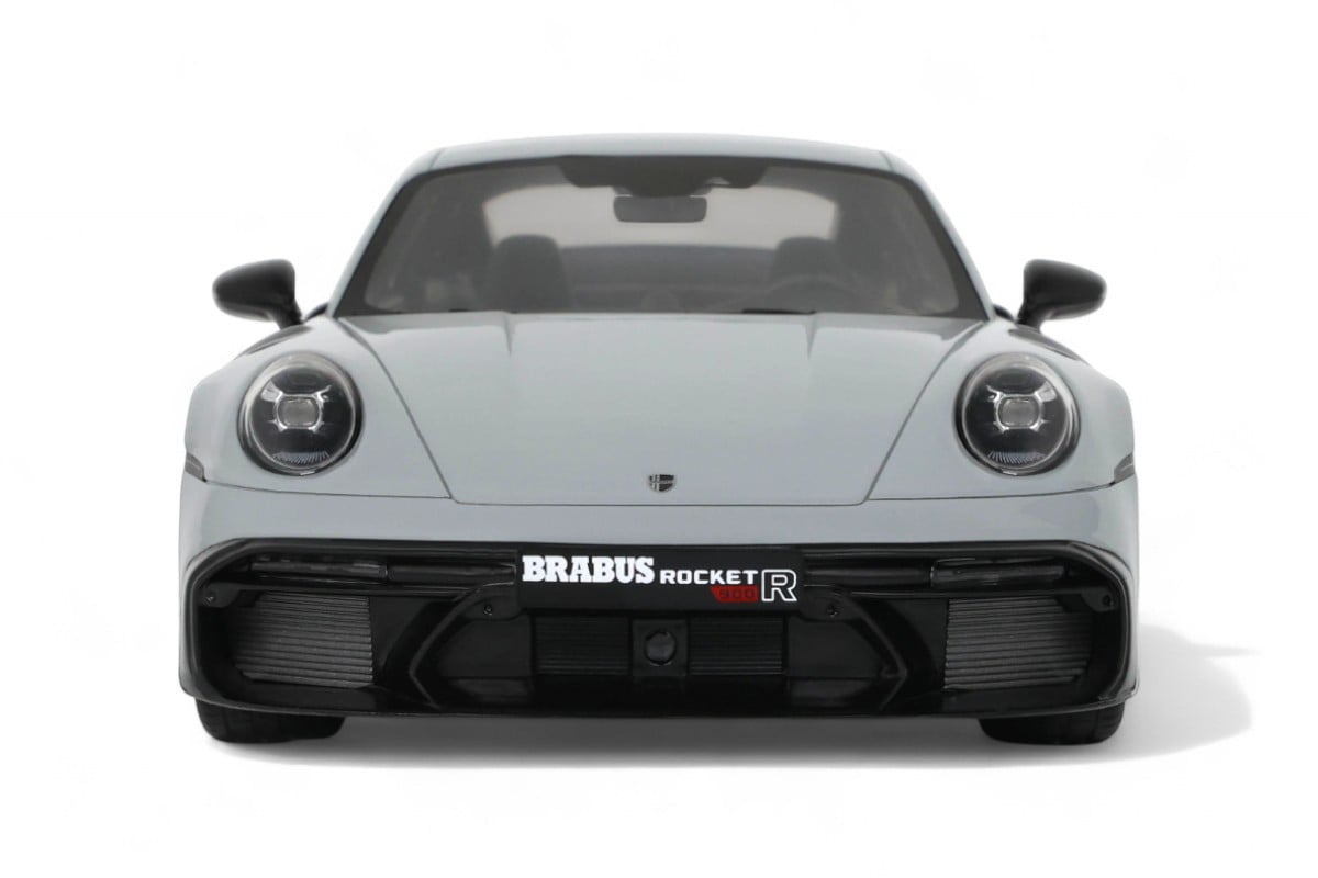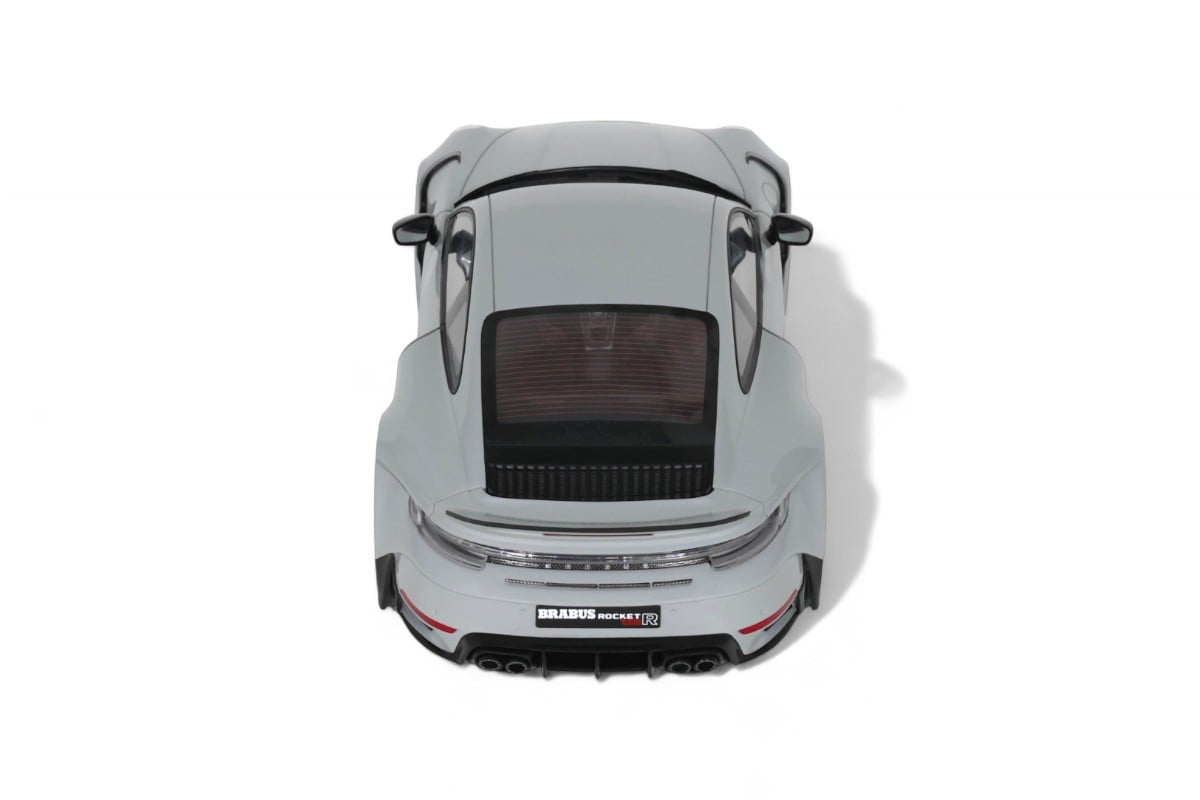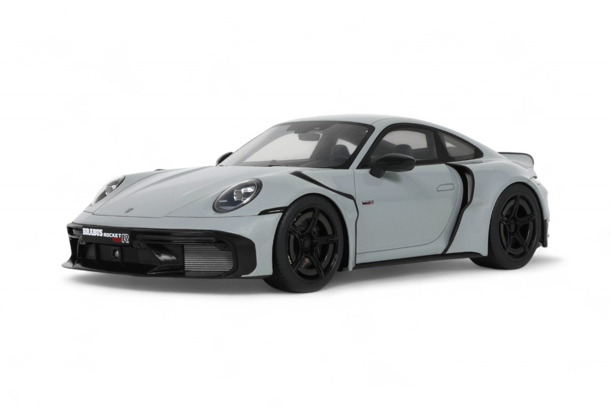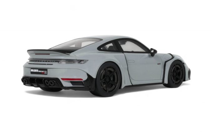 Ce Brabus 900 Rocket-R à l'échelle 1:18 impressionne dans sa distinguée teinte gris Nardo. Précisément reproduit en résine par GT Spirit, ce modèle en série limitée est présenté sur un socle élégant. Développant 900 chevaux à partir d'une base Porsche 911, le Rocket-R est une interprétation radicale du préparateur allemand Brabus, généralement connu pour ses transformations Mercedes, qui repousse les limites de performance tout en conservant une allure sophistiquée.