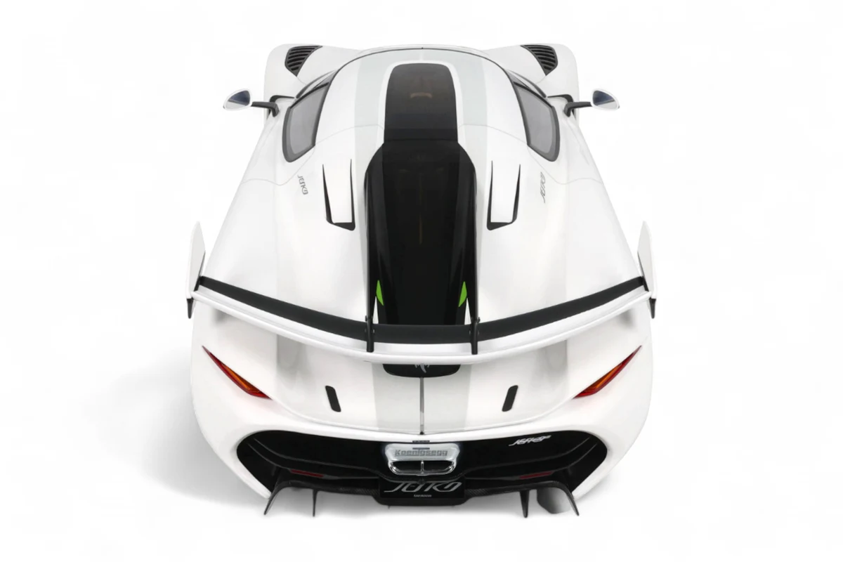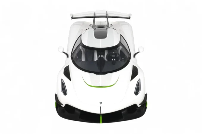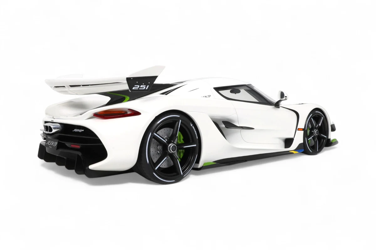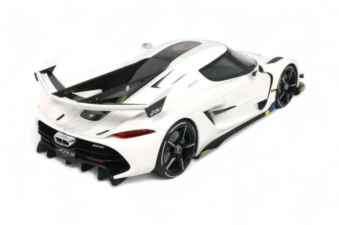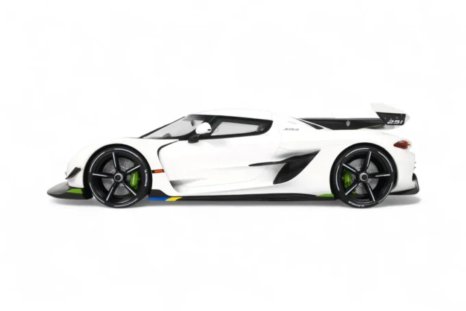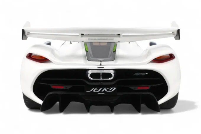 Cette impressionnante Koenigsegg Jesko à l'échelle 1:8 blanche par GT Spirit capture l'essence de l'hypercar suédoise dans ses moindres détails. Présentée avec socle et vitrine, cette pièce en série limitée rend hommage à la machine capable de théoriquement atteindre 531 km/h grâce à son aérodynamisme révolutionnaire et ses 1600 chevaux.