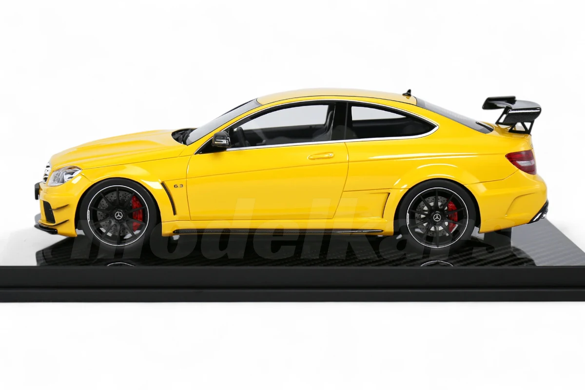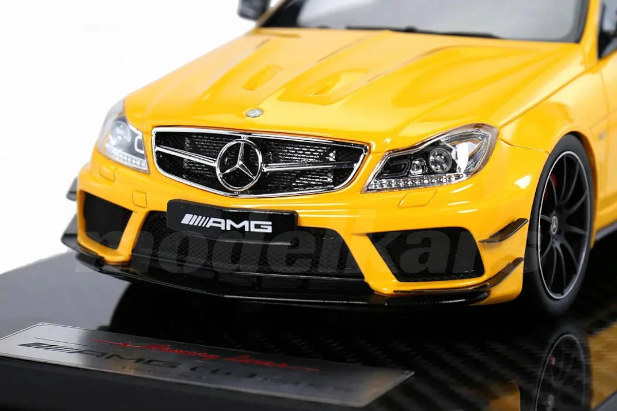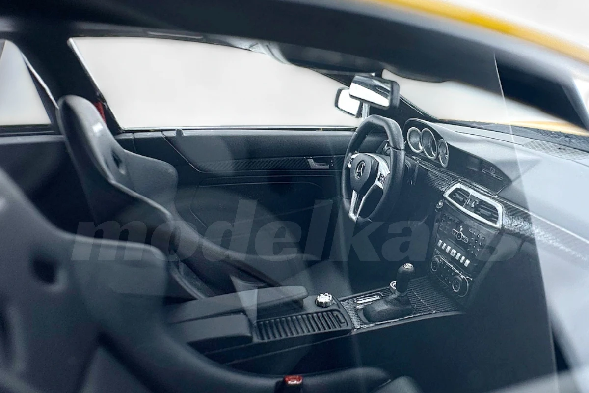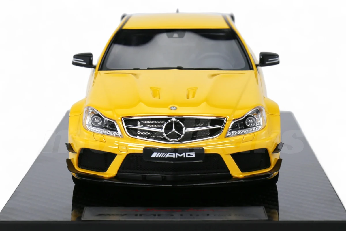Cette Mercedes C 63 AMG Black Series à l'échelle 1:18 met en lumière la personnalité explosive de ce coupé radical dans une teinte jaune. Fabriquée par Memory Lines en résine, limitée à 99 exemplaires avec socle et vitrine, elle célèbre une machine développée directement à partir de l'expérience DTM de Mercedes. Avec ses élargisseurs d'ailes vissés et son capot en carbone, la Black Series transformait la sage Classe C en véritable arme de circuit homologuée pour la route.