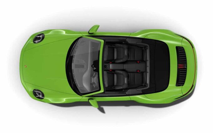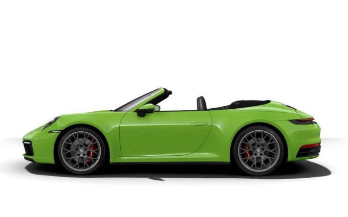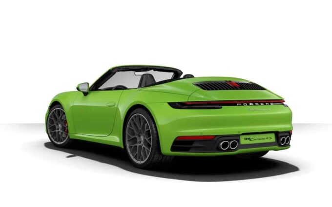 Cette superbe Porsche 911 Carrera 4S (type 992) est reproduite à l'échelle 1:18 par Minichamps dans sa version Cabriolet verte (Lizard Green).
