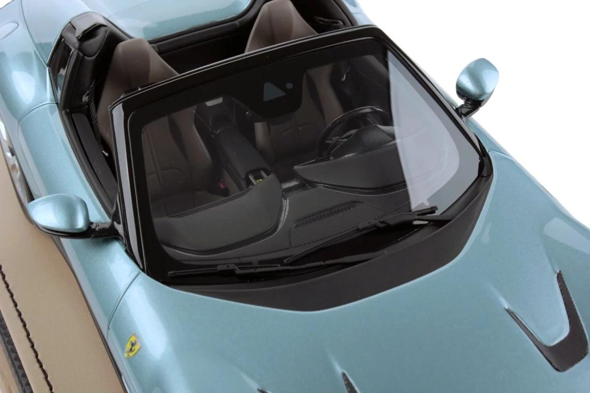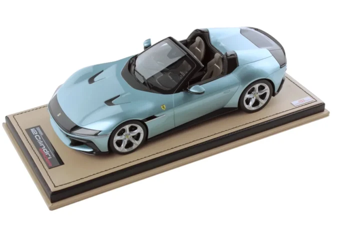Découvrez l'exclusivité avec la Ferrari 12 Cilindri Spider en miniature à l'échelle 1:18, dans un Celeste Trevi unique. Cette édition limitée par MR Collection présente une finition exceptionnelle avec son socle et sa vitrine.