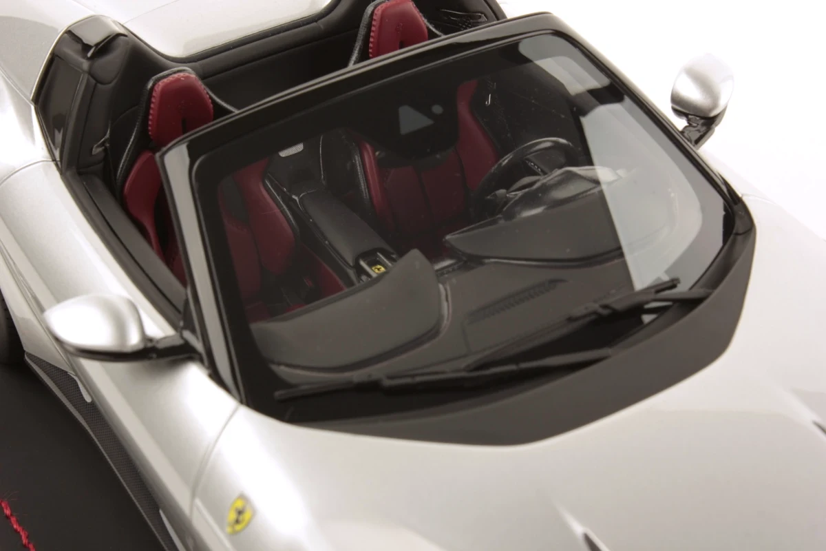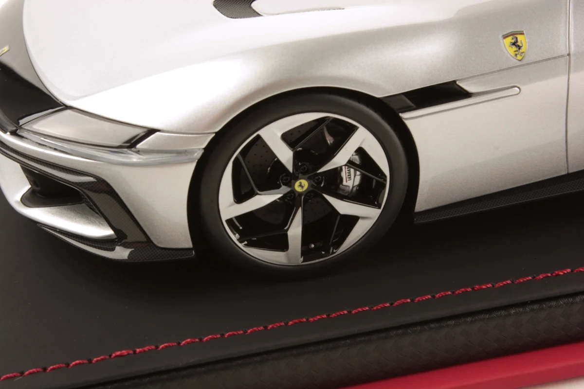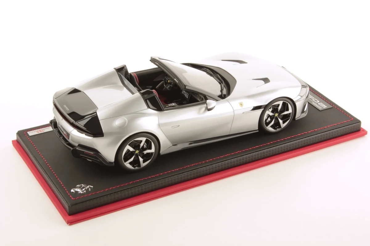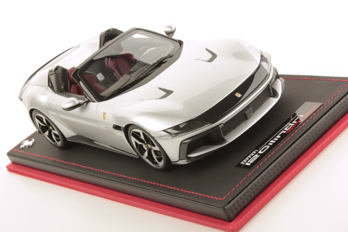 Admirez la Ferrari 12 Cilindri Spider en miniature à l'échelle 1:18, avec une finition argent Nurburgring. Cette édition limitée par MR Collection, limitée à seulement 49 exemplaires, comprend un socle et une vitrine.