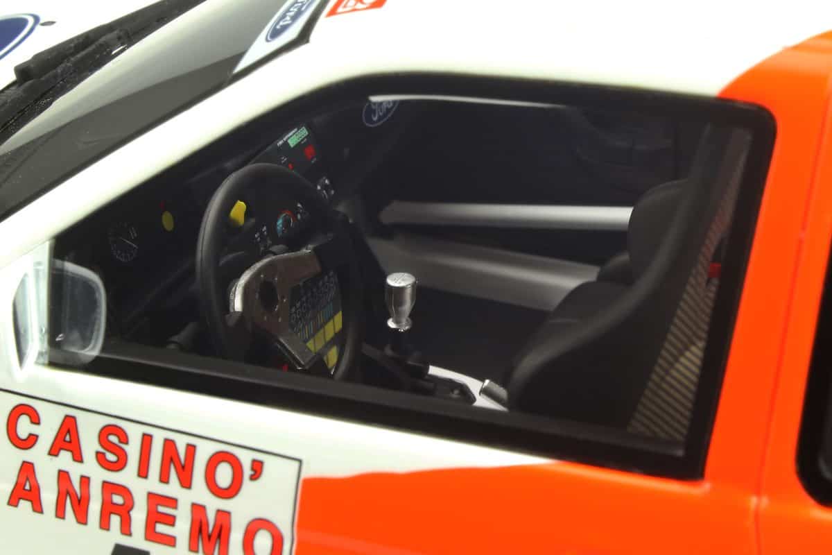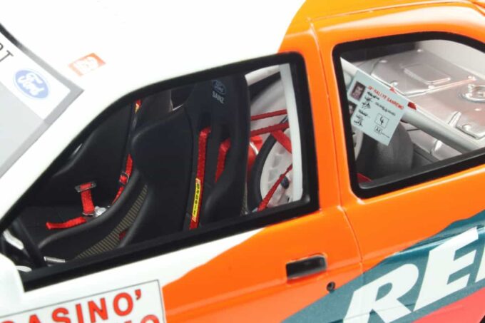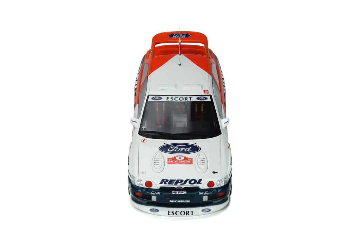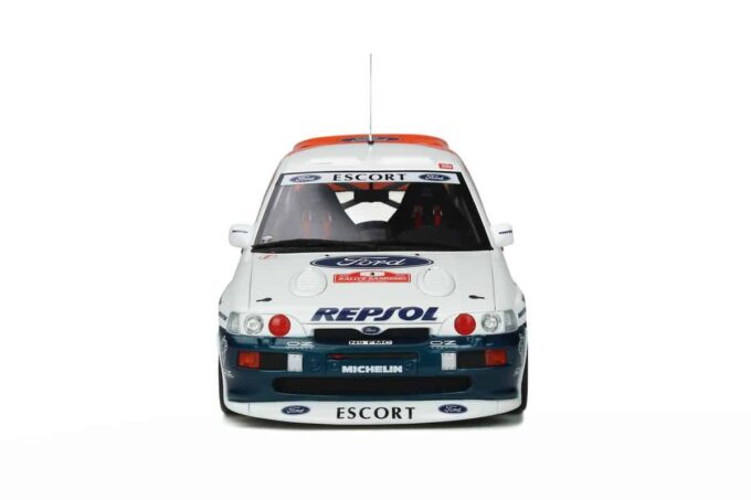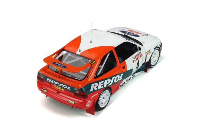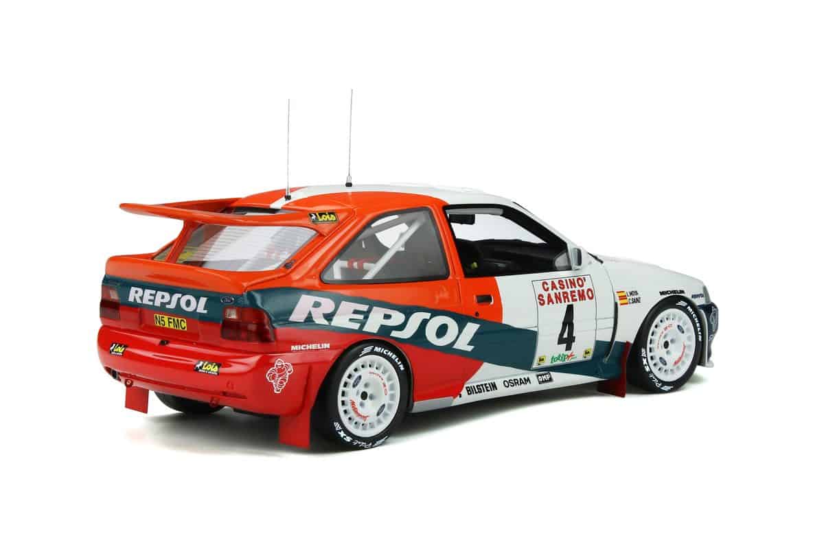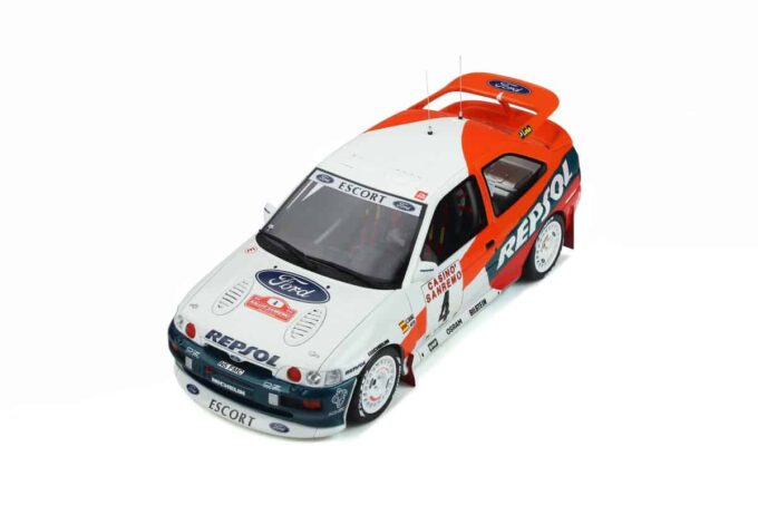 Cette Ford Escort Cosworth Groupe A, aux couleurs blanche et rouge du sponsor Repsol, fût pilotée par C. Sainz au rallye de San Remo en 1996. Fabriquée par OttOmobile, cette miniature reproduit fidèlement cette voiture à l'échelle 1:18ème.