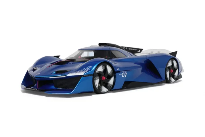 L'Alpine Alpenglow HY6 à l'échelle 1:18 se présente dans une teinte bleu Specular saisissante. Produite en résine par OttOmobile en série limitée, cette miniature reproduit le prototype révolutionnaire d'Alpine, dont le moteur V6 biturbo de 3,5 litres développe 740 chevaux en brûlant de l'hydrogène et peut atteindre 9000 tours par minute.