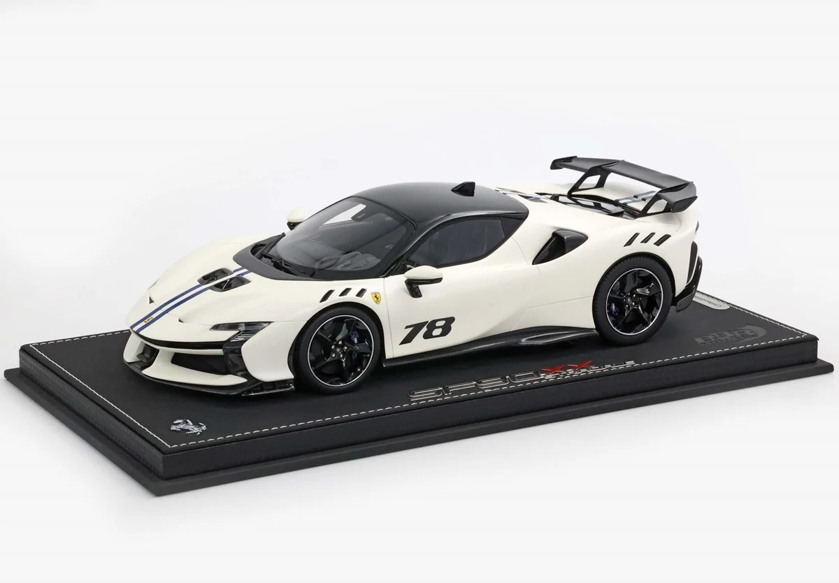 À l’échelle 1:18, ce modèle Ferrari SF90 XX Stradale en blanc Italia mat est une pièce exceptionnelle réalisée par BBR en résine, produite en série limitée. Posé sur un socle, ce modèle met en valeur la beauté et les capacités techniques de la SF90 XX Stradale, l’une des Ferrari les plus avancées jamais conçues, avec son moteur hybride révolutionnaire. Modèle limité à 15 pièces numérotées.