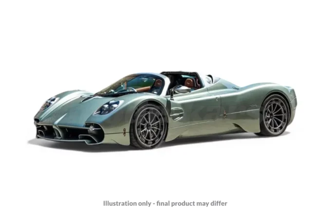 Reproduite à l'échelle 1:18 par BBR en résine, cette Pagani Utopia Roadster affiche un superbe coloris Verde Mara en configuration toit ouvert. Ce modèle réduit en série limitée est livré sur socle. Le volant de l'Utopia Roadster est usiné à partir d'un bloc d'aluminium de 43 kilogramètres pendant 28 heures pour obtenir une pièce finale ne pesant que 1,6 kilogramme, illustrant l'obsession de Pagani pour les détails.