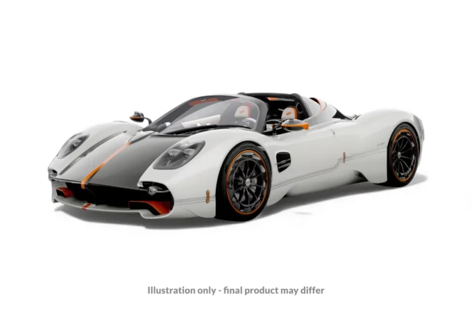 Réalisée à l'échelle 1:18 par BBR en résine, cette Pagani Utopia Roadster arbore un raffiné Bianco Benny gloss en configuration toit ouvert. Cette pièce en série limitée est présentée sur un socle. Le châssis monocoque de l'Utopia exploite plus de 40 combinaisons différentes de matériaux composites pour optimiser rigidité et légèreté.