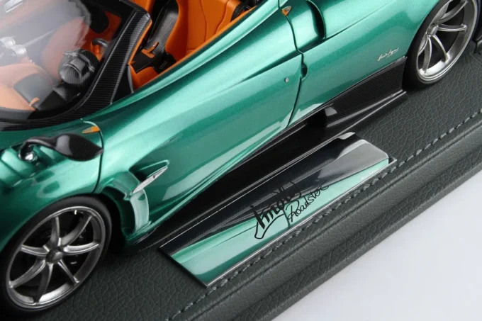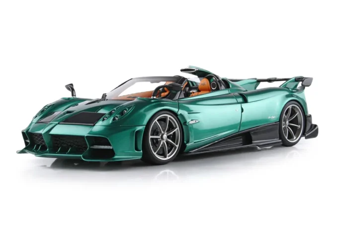 Cette miniature à l'échelle 1:18 de la Pagani Imola Roadster captive avec sa teinte vert Rio, une couleur aussi audacieuse que la supercar elle-même. Fabriqué en résine par BBR, ce modèle en édition limitée est présenté sur un socle élégant, ajoutant une touche de luxe à cette pièce rare. La Pagani Imola est célèbre pour ses performances exceptionnelles et sa technologie inspirée de la course automobile, conçue pour offrir une expérience de conduite sans compromis.
