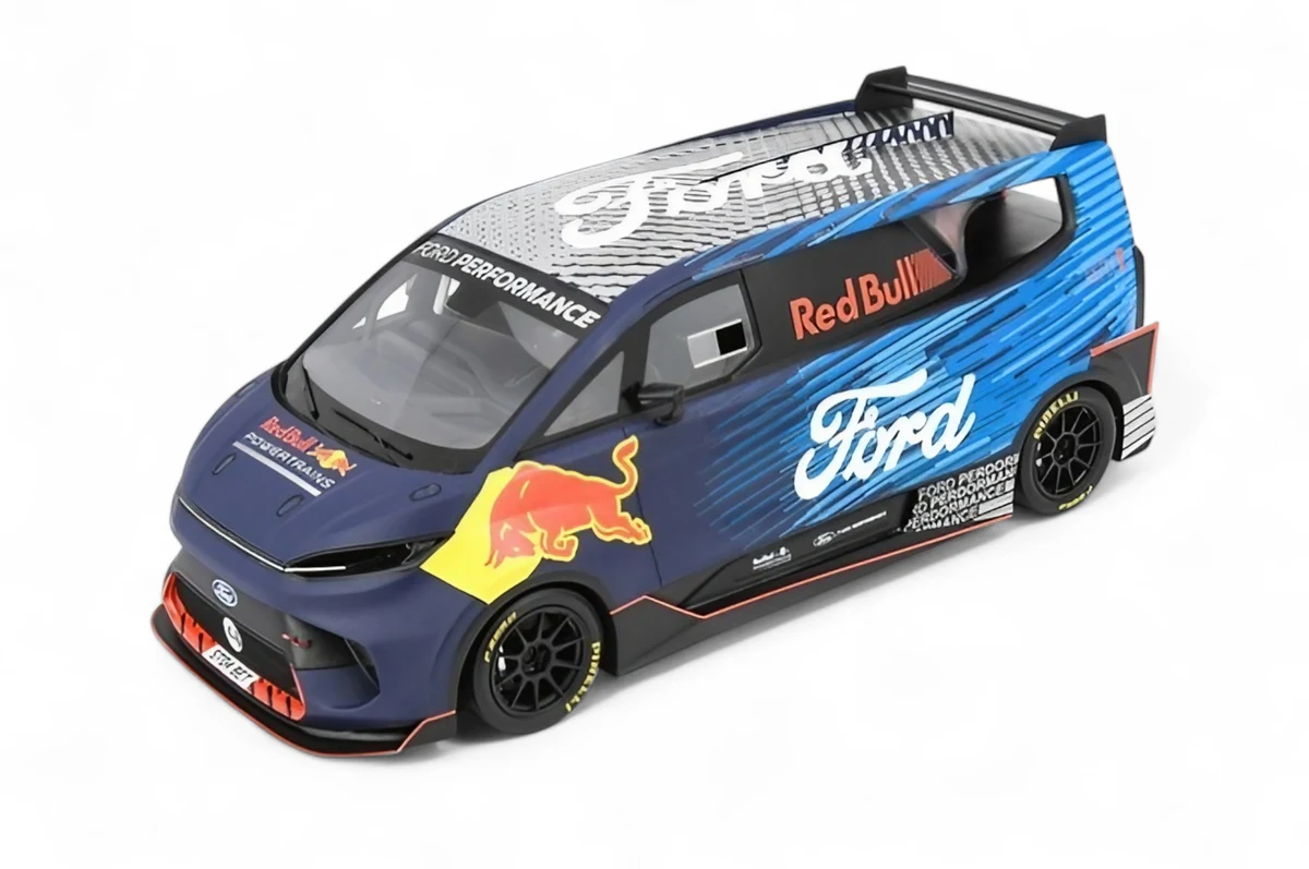 Cette miniature à l'échelle 1:18 reproduit le Ford Supervan 4 avec une livrée Red Bull piloté par Max Verstappen lors de ses démonstrations au Circuit du Grand Sambuc en 2023. Réalisée en résine par Spark, elle est accompagnée d'un socle et d'une vitrine. Ce véhicule électrique développe 1400 chevaux et perpétue une tradition Ford débutée en 1971, lorsque le premier Supervan dissimulait le moteur V8 d'une GT40 sous une carrosserie de Transit.