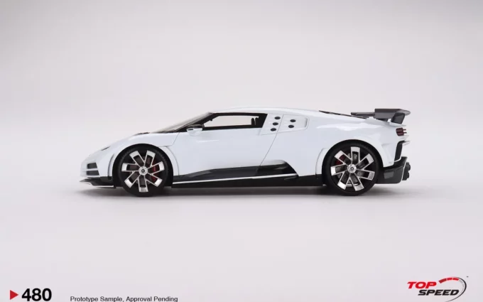 Cette voiture miniature à l'échelle 1:18ème reproduit la Bugatti Centodieci dans un coloris blanc. Fabriqué par TopSpeed, ce modèle réduit est réalisé en résine.