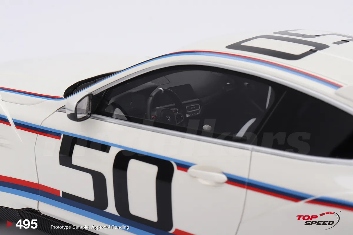 La BMW M4 3.0 CSL (G82) à l'échelle 1:18, en blanc Brillant, est un modèle en résine réalisé par TopSpeed. Cette version moderne rend hommage à l'iconique "Batmobile" des années 70, célèbre pour son style unique et ses prouesses sur circuit.